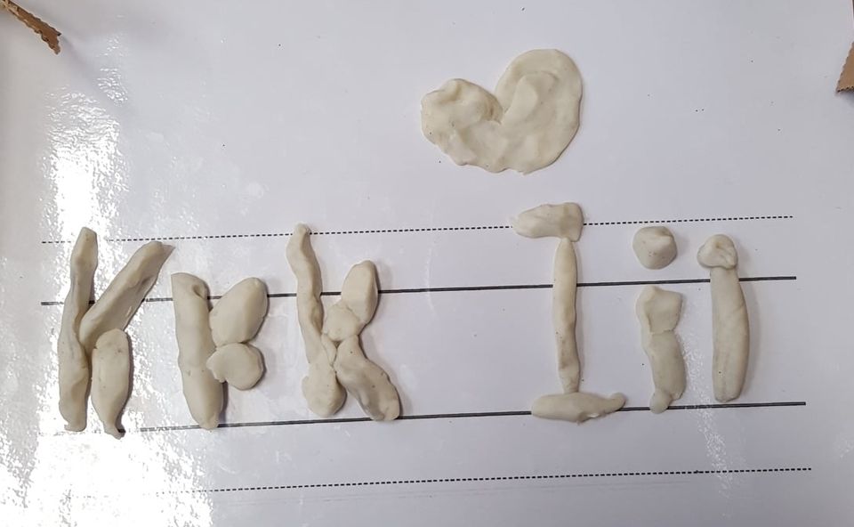 We are working with all the children in group 3 to really see, name, and make the letters i and k with clay.
