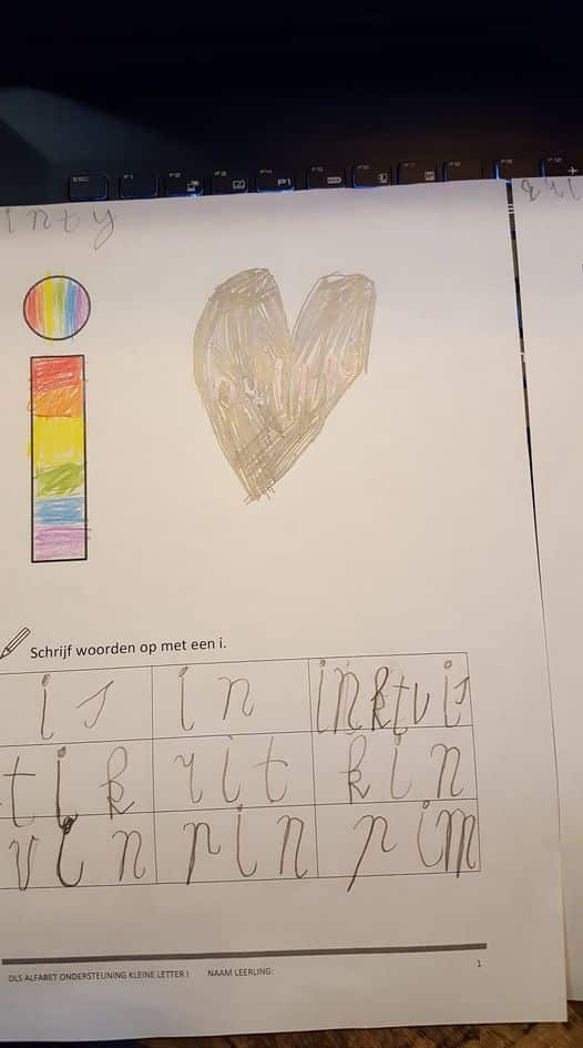 It’s nice to see how the little ones are already so enthusiastic about copying both the upper and lower case letters. And then practice getting to know the letters even better. On paper, they color the letters and find and trace over words with the k and i.